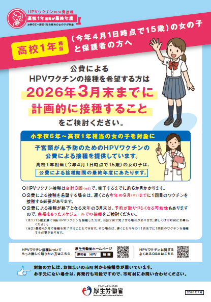 小学校6年から高校1年相当の女の子と保護者の方へ大切なお知らせ (詳細版)(外部サイト)