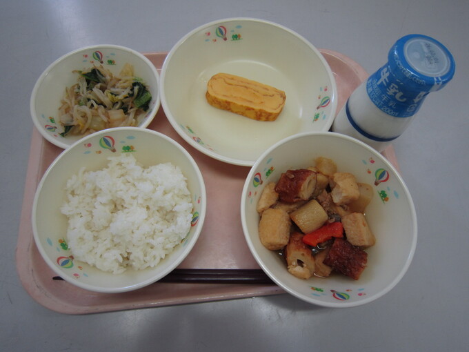 ごはん、牛乳、関東煮、厚焼き卵、からしあえ