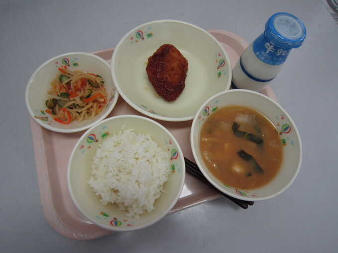ごはん、牛乳、たらのフライレモンソースかけ、切り干しだいこんのあえもの、あわせみそ汁