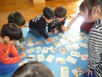 人権擁護委員の方に人権について、お話をしていただきました。子供たちからは「お友達とケンカしない」「仲良くする」「ごめんねと言い仲直りする」などの言葉が聞かれました。人権について書かれている札を使い、カルタ取りをしました。子供たちは読み札が呼ばれると素早く札を見付け「とった」「私の方が先だよ」と楽しそうにカルタ取りをしていました。