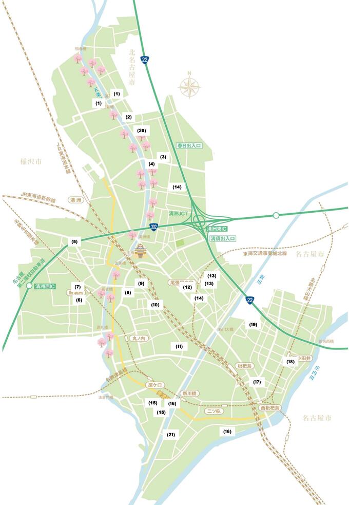 清須市内で行われている場所は次のとおりです。