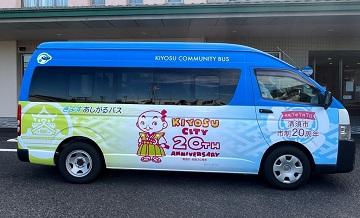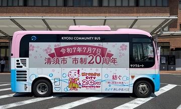 コミュニティバス「きよすあしがるバス」は、清須市の市制20周年を記念し、特別ラッピングをして運行しました。