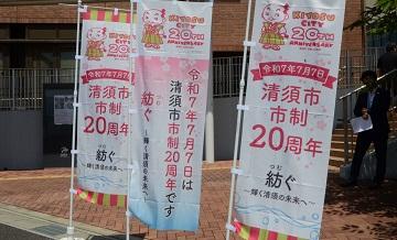 そのほか、市内各所にのぼり旗やタペストリーなどが設置され、市制20周年に向けたPRを行いました。