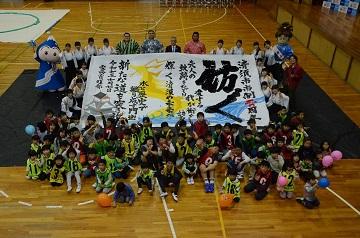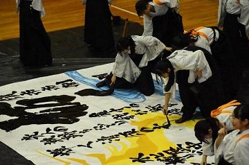 愛知商業高校書道部の皆さんによる「書道パフォーマンス」では、市制20周年のキャッチコピーなどを、曲に合わせた踊りとともに書き上げ、市制20周年のスタートにふさわしいパフォーマンスを披露していただきました。
