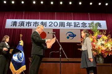 春日公民館大ホールで『清須市市制20周年記念式典』を開催しました。