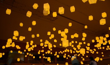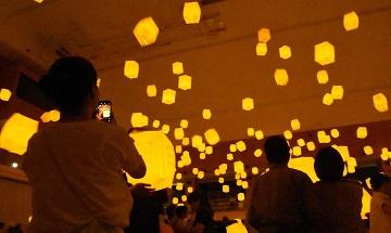 令和7年7月7日の七夕にちなんで、総勢777人で、願い事を書いた388基のスカイランタンを打ち上げることをコンセプトとしたこのイベントは、天候の都合(雷注意報、風速3m/s以上)により屋内での実施となりましたが、参加者の願いをのせた多くのランタンが暗やみに浮かぶ様子に、会場内は幻想的な雰囲気に包まれました。